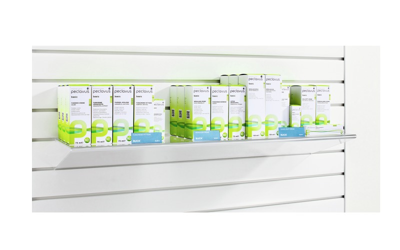 Благодаря своей компактности, изящности и лаконичному дизайну панель-витрина может использоваться даже в небольших кабинетах и прекрасно вписывается в любой интерьер. Это эксклюзивный дизайнерский продукт с гибкими возможностями. Брошюры, косметику, ортопедические изделия, пробники и тестеры — все это теперь вы сможете расположить буквально на уровне глаз клиента. В зависимости от того, какие товары и в каком количестве вы хотите разместить на витрине, вы можете заказать нужное количество полок, держателей, боксов, контейнеров и крючков. Все эти аксессуары изготовлены из высококачественного акрила или металла, легко комбинируются между собой и крепятся к настенной панели бесшовным способом.